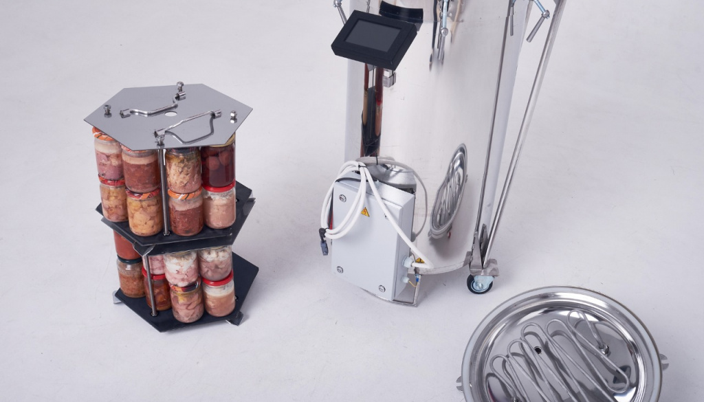 «Фермер» — модель созданная для фермеров, небольших производств и цехов. Объём в 125 литров позволяет за один цикл приготовить до 90-100реторт-пакетов (400 г) или 189 жестяных банок (375 г) без кассет. Это оптимальное решение для тех, кто ценит промышленную производительность при сохранении компактных габаритов.