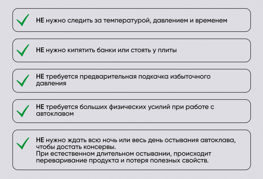 • Вы экономите время и силы, сокращая время приготовления закаток.